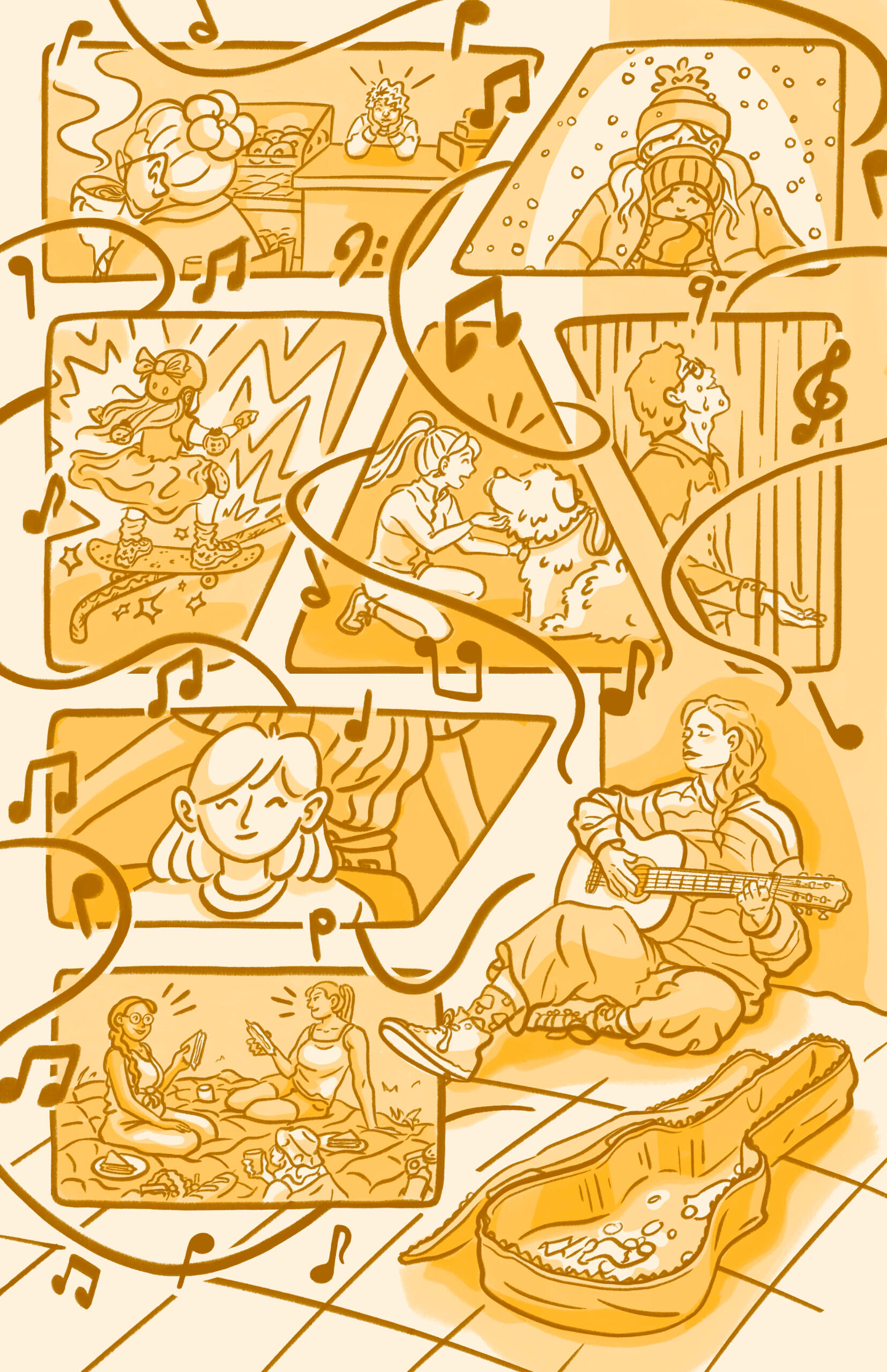 I'm an illustrator based in Ottawa, known for creating vibrant, playful artwork. I love short comics with a sense of humour and charm. As a food enthusiast, I often find inspiration in the textures and colours of various dishes, and usually incorporate food into my illustrations. I'm also a brand designer! I create bold, yet approachable identities that feel both playful and welcoming. I help brands communicate warmth and personality through design that resonates with audiences on a personal level.