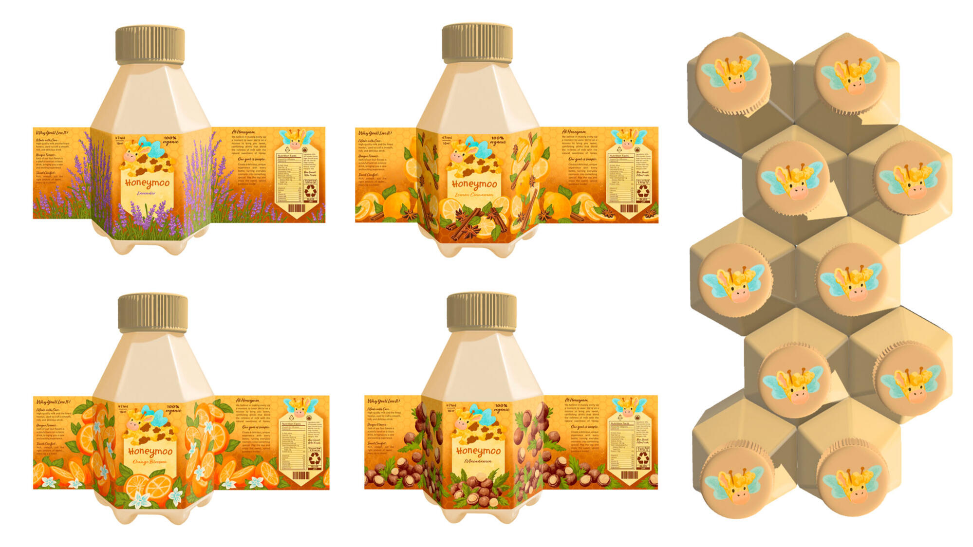 The brand features four unique flavours of infused honey goodness! Each flavour has a customized label designed to promote its natural ingredients.