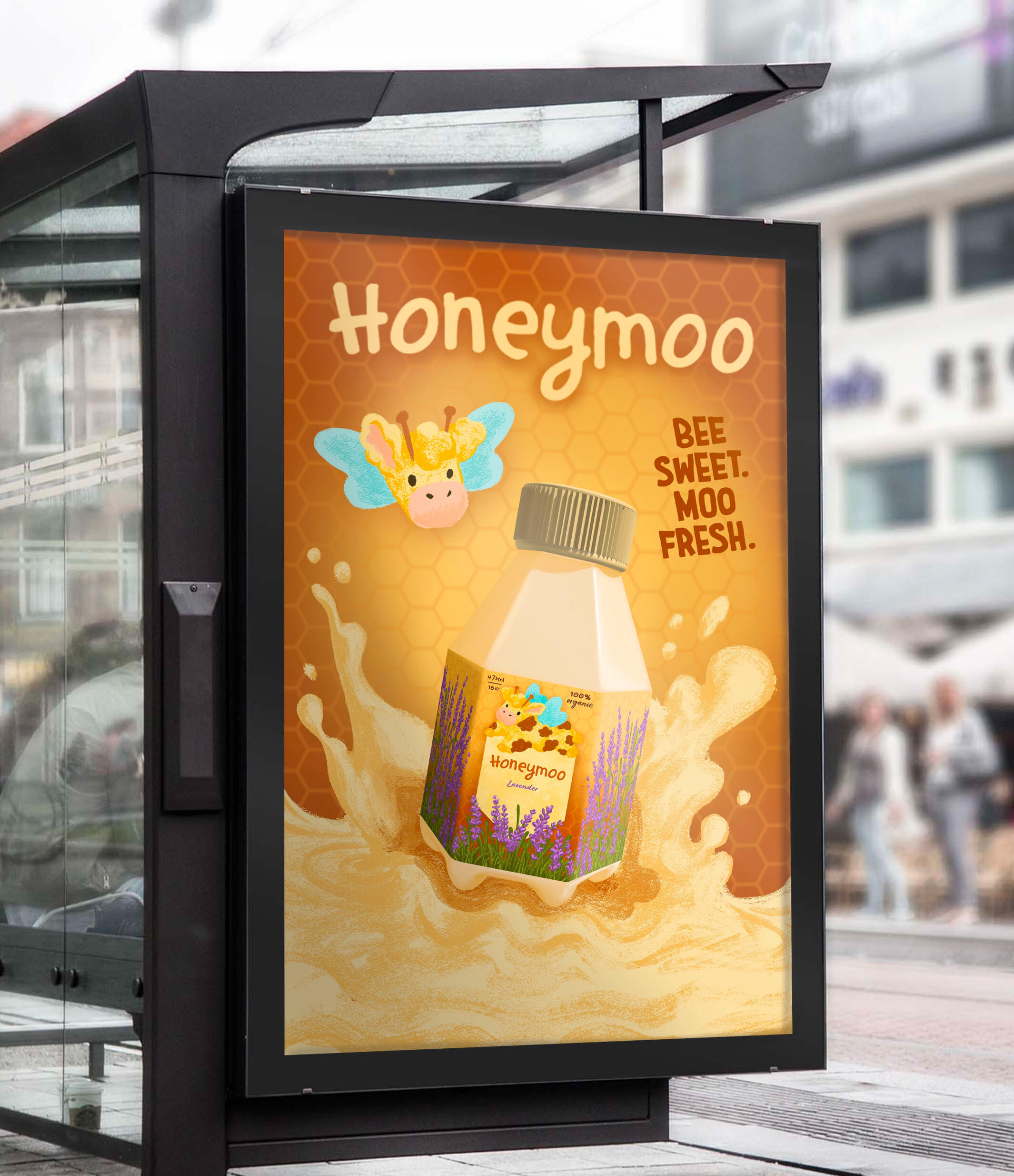 Bus Stop Ad & Instagram Posts. A fun, attention-grabbing bus stop ad and a series of bold Instagram posts. Both designs reflect the brand’s playful and sweet identity!